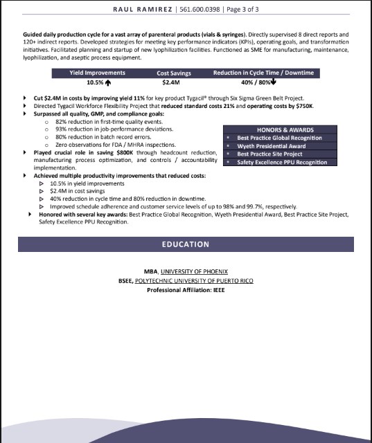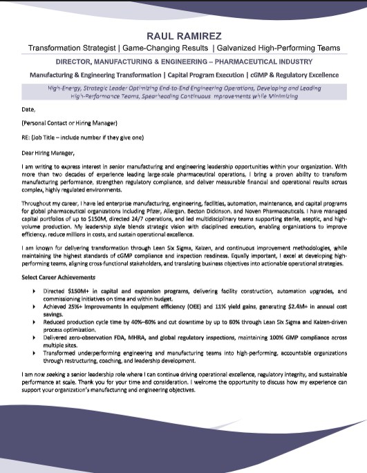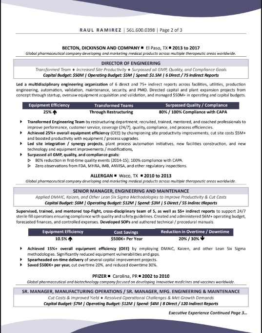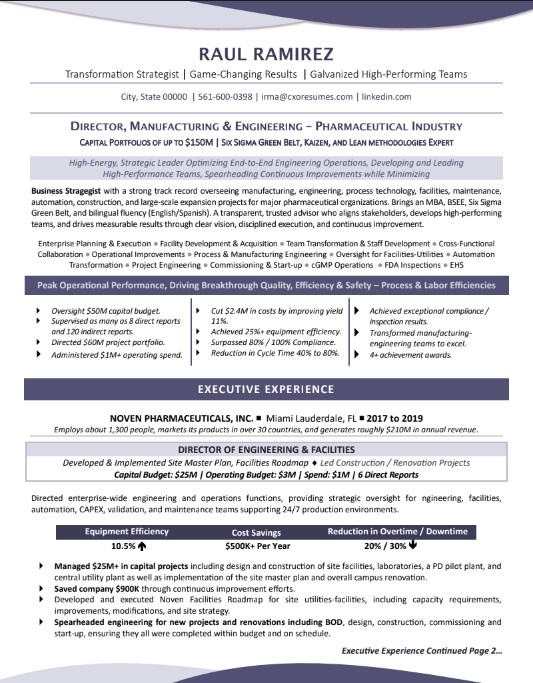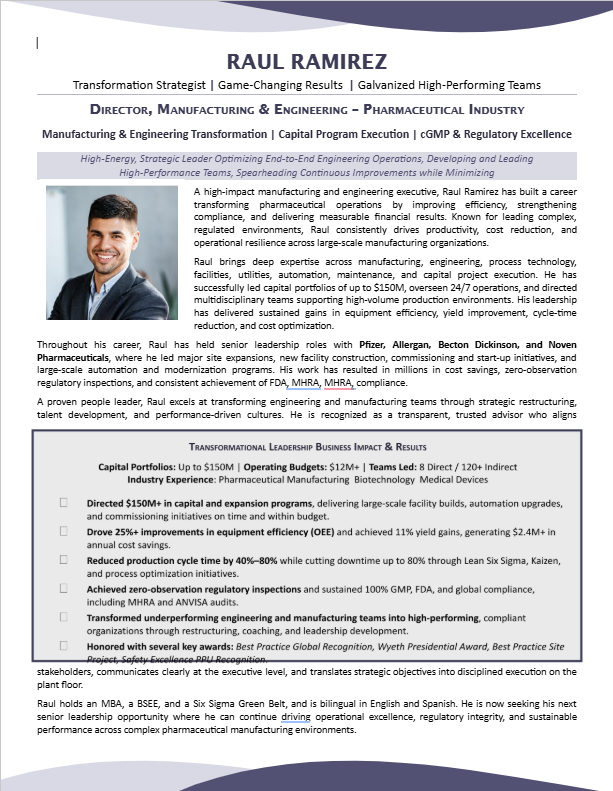 DIRECTOR, MANUFACTURING & ENGINEERING RESUME