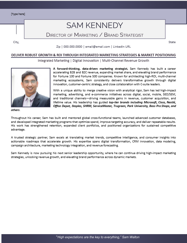 Clean, impactful, and authoritative, built for leaders pursuing C-suite and senior leadership positions.