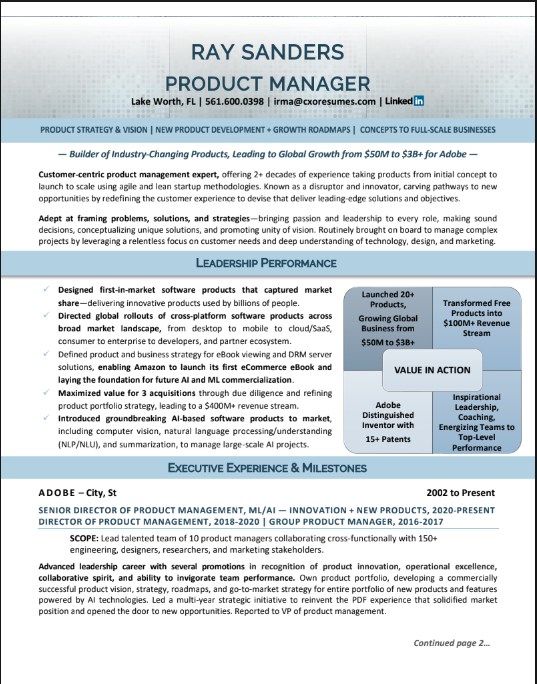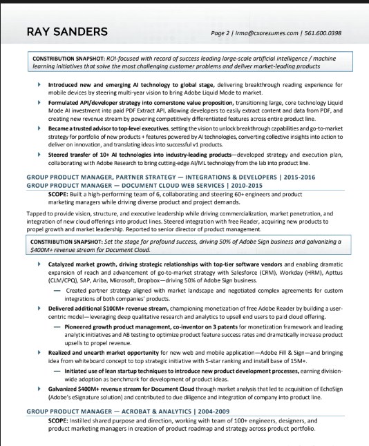 “I highly recommend Irma to anyone serious about creating a best-in-class resume and LinkedIn profile. She’s a pleasure to work with and exceptional at transforming a career’s worth of experience into a compelling professional story.”